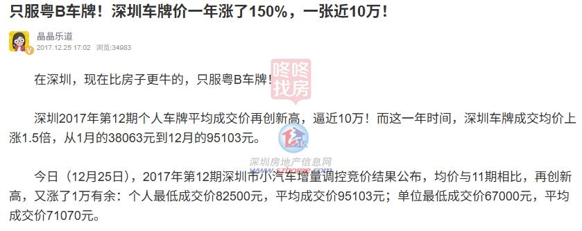 ● 2017年12月:一块粤B车牌=2.7平龙岗房=1.9平宝安房=1.3平罗湖房=1.3平福田房=1平南山房;